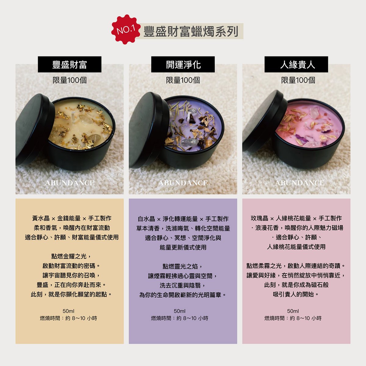以七脈輪能量為靈感製作的療癒系蠟燭,結合天然礦石與花材香氣,平衡身心能量,讓每次點燃都成為放鬆與冥想的時刻。每一顆蠟燭,都是我們親手製作的能量載體,以「安心」、「美感」、「能量」為出發,讓每一次點燃,都成為你與生活對話的溫柔時光。